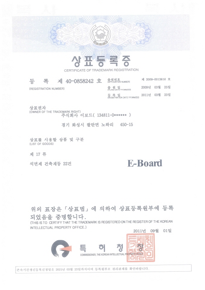 "슈퍼e-보드" 상표등록 완료 및 상…