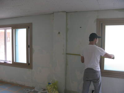 먼저 이보드가 적용될 벽체의 사이즈에 맞게 줄자 등을 이용해 이보드 표면에 표시하고