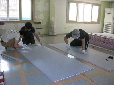 만일 단열재의 두께가 두꺼울 시에는 표면판 먼저 칼집을 내고 뒷면의 스티로폼을 한번 더