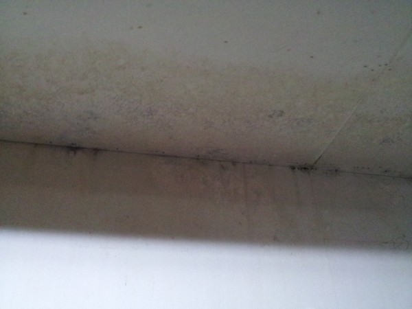 천정부위에서 벽체와 맞닿는 모서리 부위에 결로발생으로 인한 하자 보수 장면입니다.